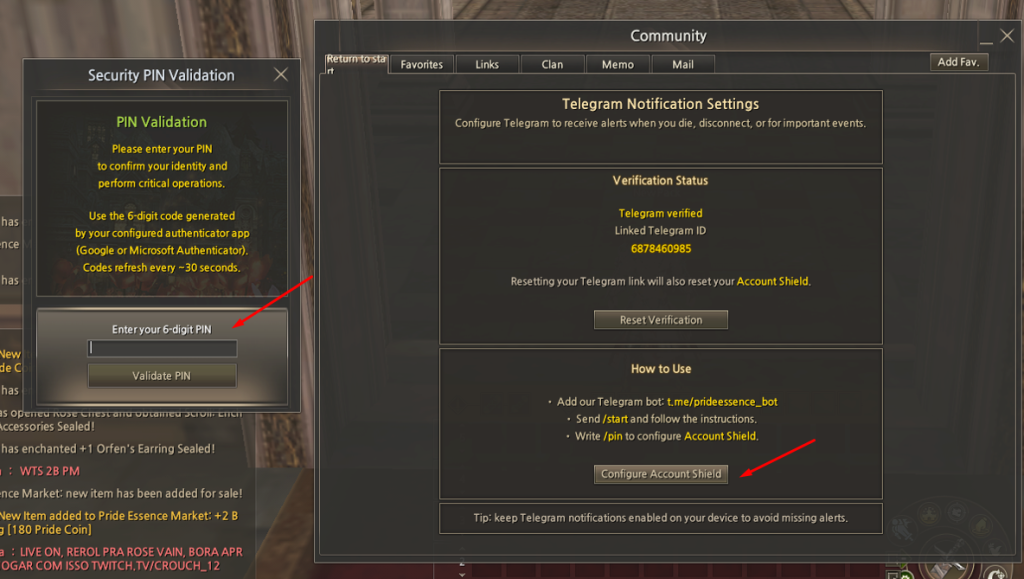 - Click on Configure Account Shield and enter the PIN currently displayed in your Google or Microsoft Authenticator.