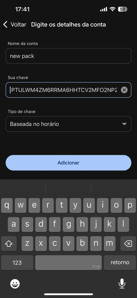 - Add the name and Secret Key you received in the Telegram message, as shown in the example below.
