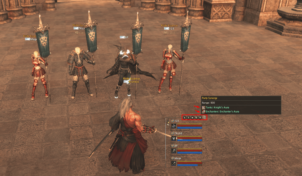 • While within range, all party members benefit from special auras granted by specific roles, such as the Knight’s Aura from the Tank and the Enchanter’s Aura from the Enchanter.