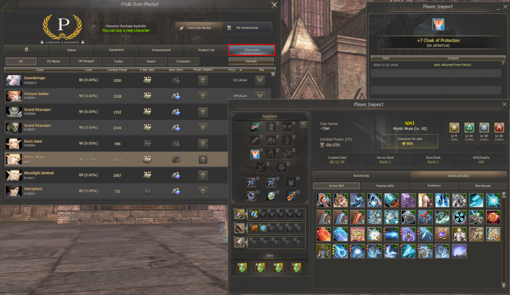 - Interested buyers can view detailed information about the character, including how and when items were obtained, with precise dates and times. They can also inspect skills, rare items, exclusive attributes, and a complete list of the character’s possessions, such as 4-star skill books and other valuable assets. This ensures full transparency for all players.