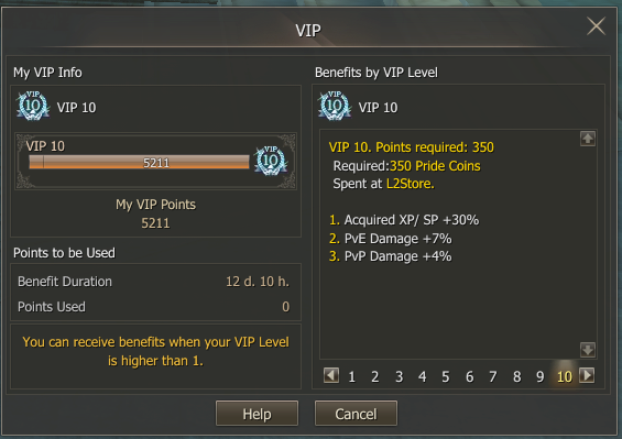 - VIP 10 – Required 350 Pride Coins spent in L2 Game Store